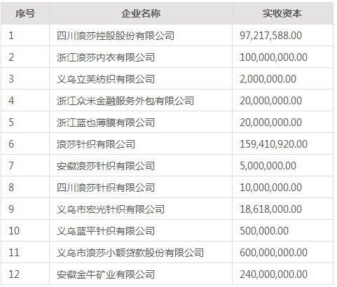 浪莎控股集團有限公司由自然人翁榮金、翁關榮、翁榮弟共同投資組建的有限責任公司,公司成立于1995年6月22日。公司地址位于浙江省義烏市經發大道308號,法定代表人:翁榮金。經義烏市工商行政管理局核準登記注冊公司注冊資本:人民幣60,000.00萬元,公司經營范圍:實業投資、投資管理咨詢(不含證券、期貨等金融業務);襪子、內衣、紗線的批發、零售;電子元器件的生產、銷售。(依法須經批準的項目,經相關部門批準后方可開展經營活動。)