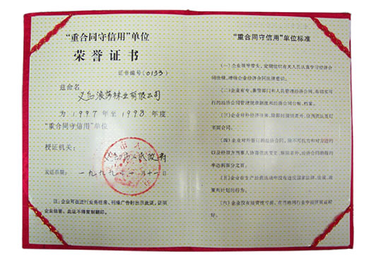 浪莎襪業股份有限公司被評為“重合同守信用”單位