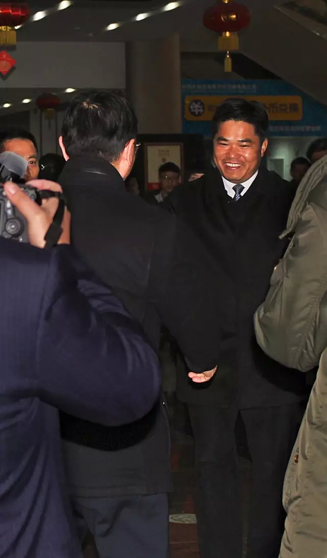上午9點,市委書記盛秋平、代市長林毅抵達商貿(mào)城四區(qū)南門,一下車就給商戶們發(fā)起春聯(lián),“生意興榮”、“財源廣進”討喜的祝詞引得人們眉開眼笑。