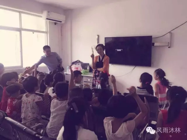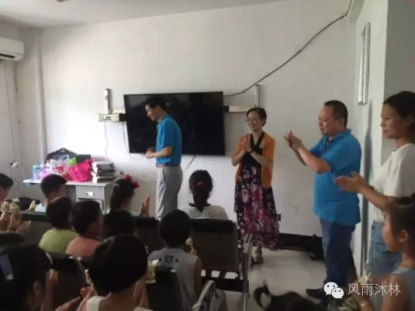 當翁總裁和陳書記來到暑期活動室,小朋友們正在興致勃勃地看動畫片。黨員干部的到來引起了小朋友們的注意,看到翁總裁和陳書記一行的到來,小朋友們很是開心。