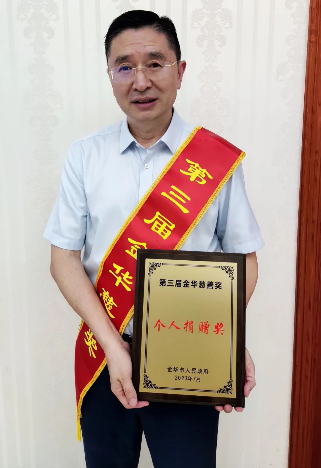 8月9日,陽光明媚,第三屆金華慈善大會如期舉行 。眾多領導及社會名流參與了本次大會。在這個充滿愛心與關懷的舞臺上,浪莎董事長翁榮金先生榮獲個人捐贈獎。