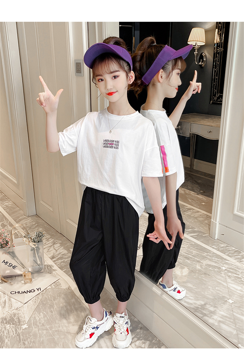 女童夏裝網紅套裝洋氣2021新款韓版時髦大童裝兒童短袖休閑兩件套