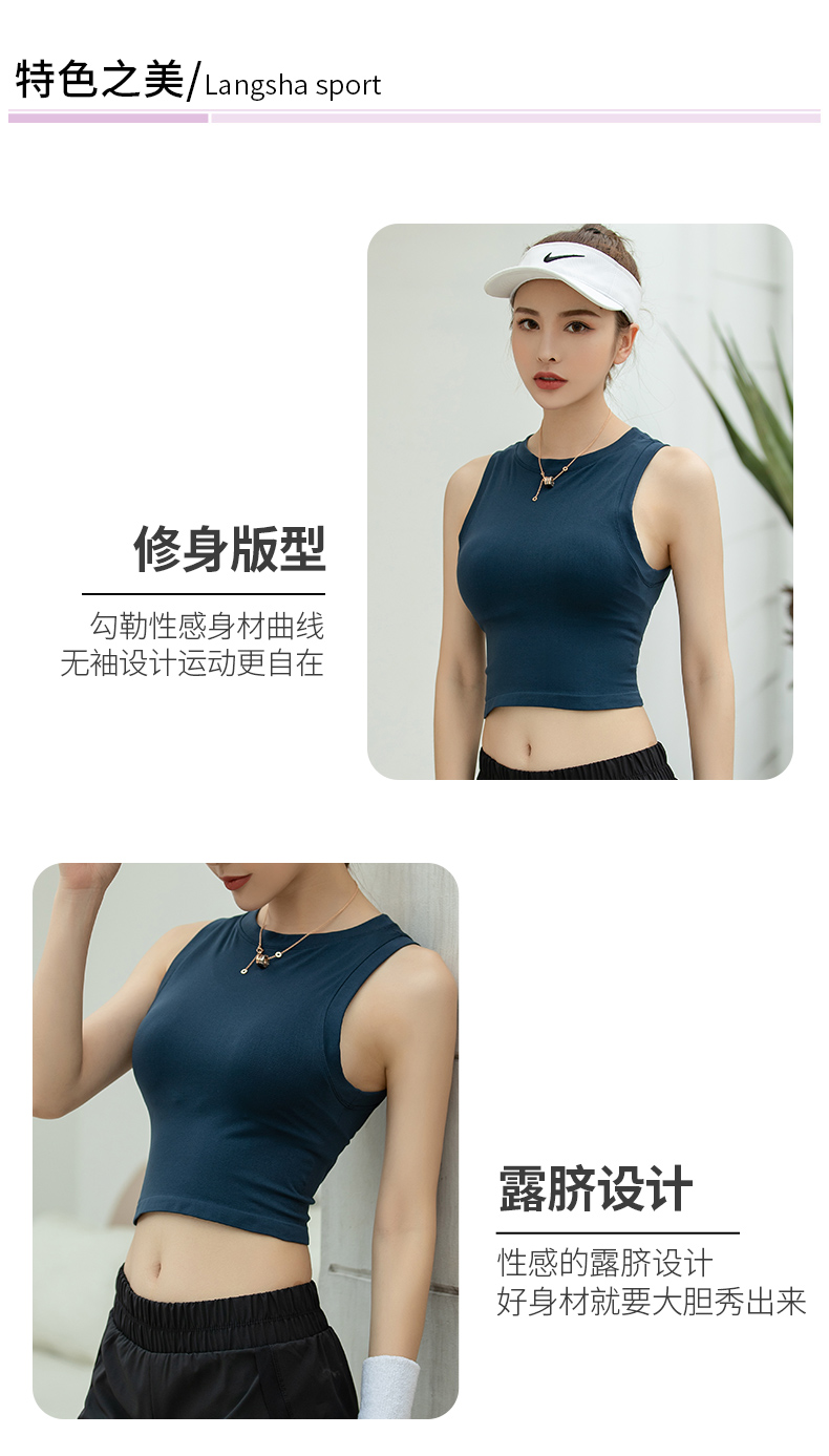 浪莎運動背心女緊身露臍無袖跑步瑜伽服上衣罩衫薄款健身速干T恤
