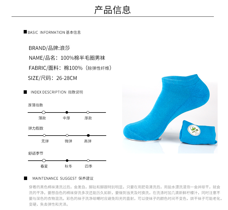 浪莎襪子 男士毛巾底船襪 純棉加厚地板襪運動短襪綠色