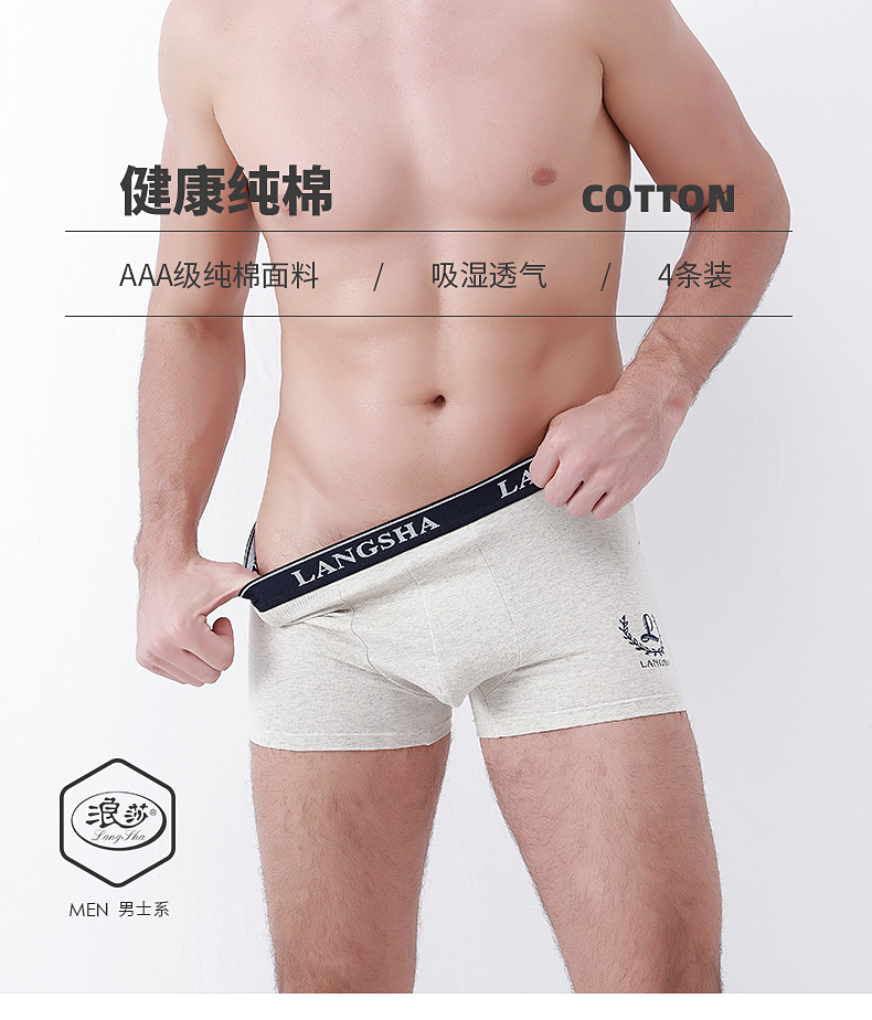浪莎內褲男純棉平角褲春夏透氣薄款男士中腰全棉商務青年四角短褲