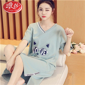浪莎純棉睡裙女夏韓版學(xué)生可愛寬松睡衣女家居服可外穿全棉短袖裙
